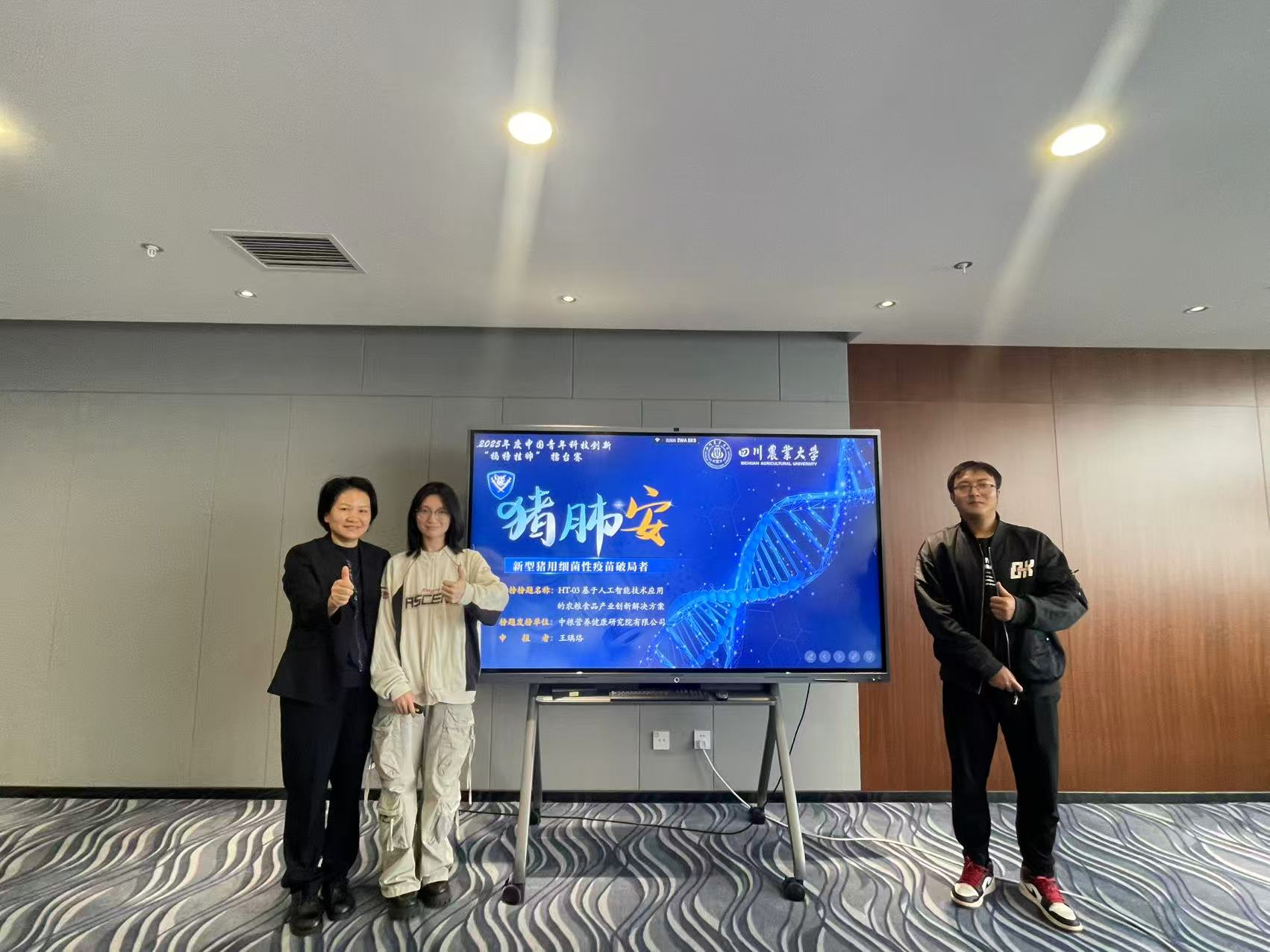 9月27-29日,2025年中国青年科技创新“揭榜挂帅”擂台赛“生物医药领域”决赛在内蒙古呼和浩特市举行。经过网评、现场路演答辩等环节的激烈角逐,中心赵勤副教授和曹三杰教授指导的研究生团队参赛作品《猪肺安——新型猪用细菌性疫苗破局者》荣获二等奖,实现了动物医学院在该项赛事上零的突破。研究生团队成员分别为王瑀珞、陈嘉勇、邓谊、卢坤、刘佳乐、陈玺竹、温鑫和庞丝宇。
