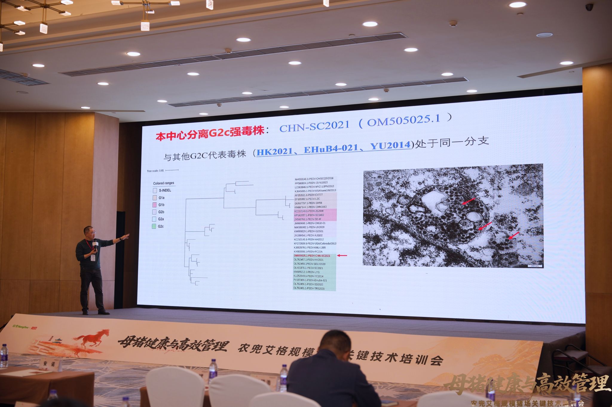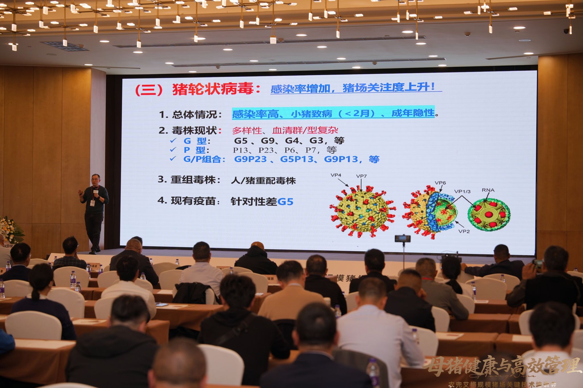猪病研究中心黄小波教授受邀参会,并做“猪病毒性腹泻的防控重点及关键措施”主题报告,聚焦当前我国规模猪场病毒性腹泻防控痛点,介绍了仔猪病毒腹泻流行态势,引起仔猪腹泻的常见病毒及新发病毒,特别重点介绍了猪流行性腹泻病毒(PEDV)、PDCoV(猪丁型冠状病毒)和猪轮状病毒的新毒株及临床新变化,结合临床案例介绍了规模猪场仔猪腹泻的精准防控实用方案。大会互动环节解答了提升腹泻疫苗黏膜免疫力、后备驯化、腹泻所致僵猪治疗等现场提问。会议期间,黄小波还接受了农兜网的专访,就广大网友关心的仔猪病毒腹泻的新变化及临床高效防控等问题进行了交流。